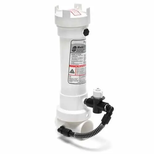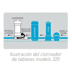 Tanto el clorinador de tabletas modelo 300 como el 320 cuentan con una válvula de regulación externa que le permite ajustar la velocidad de alimentación para satisfacer los requisitos específicos de la piscina o el spa. El clorinador de tabletas modelo 300 es ideal para una actualización en las piscinas existentes y una purificación automática. El clorinador de tabletas modelo 320 está diseñado para una instalación permanente en la línea de retorno de sistemas nuevos o existentes y distribuye el desinfectante directamente en su piscina o spa, hasta abajo donde está todo el equipo.